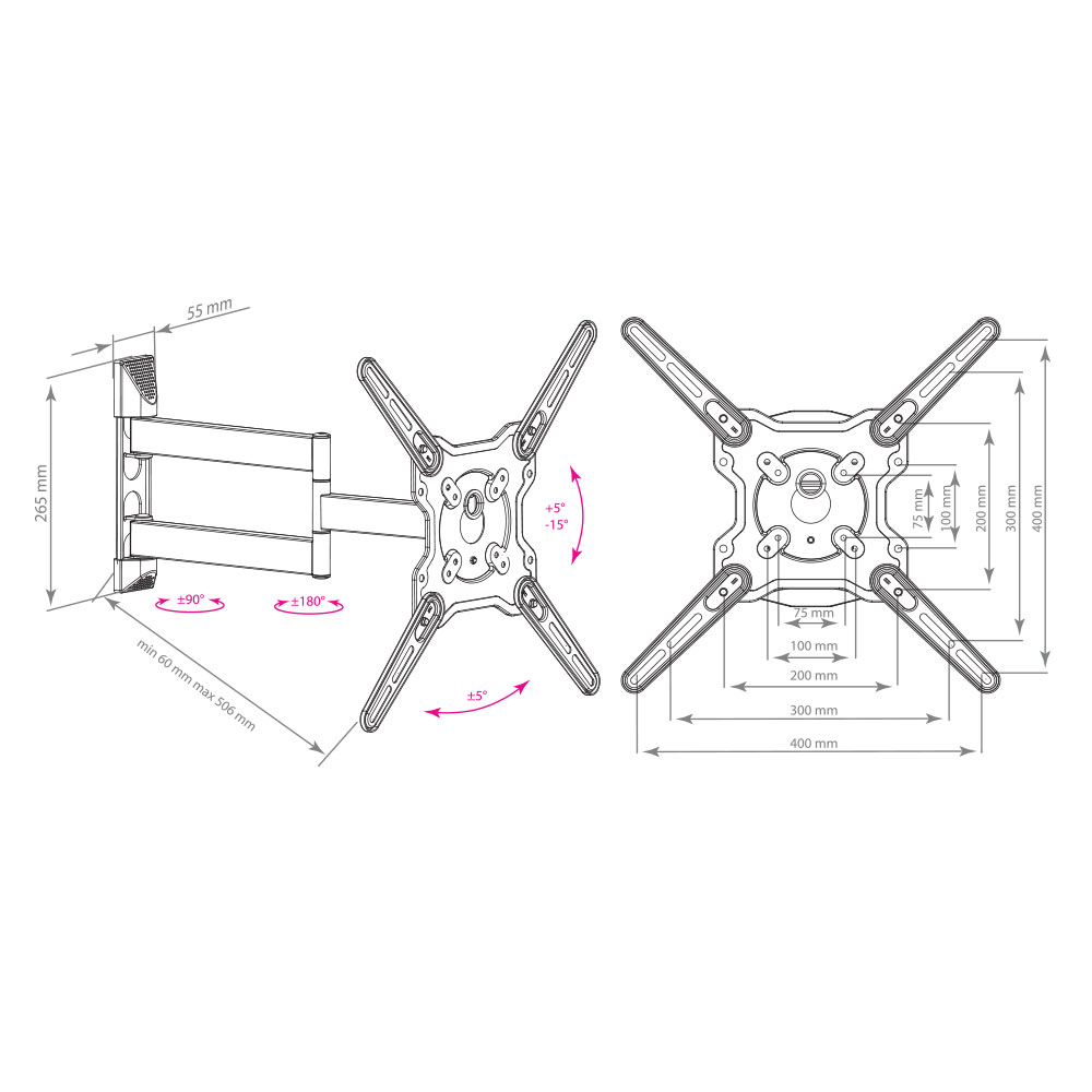 Поддержка крепления VESA 75×75, 100×100, 200×100, 200×200, 200×300, 300×200, 400×200, 300×300, 400×300, 400×400