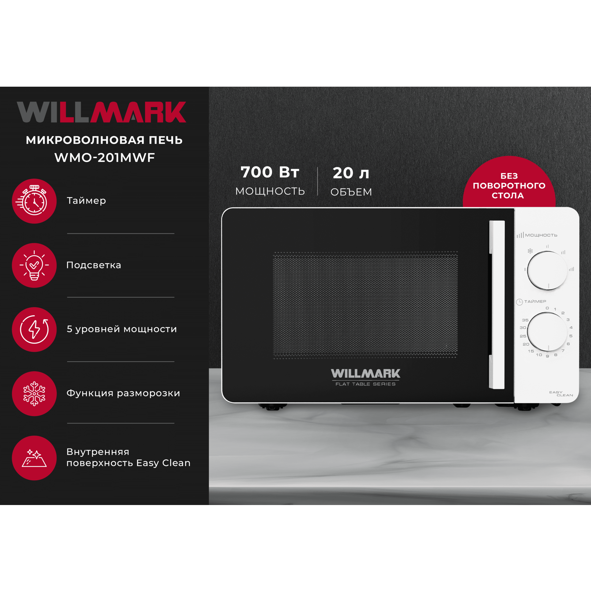—Микроволновая печь WILLMARK WMO-201MWF белый