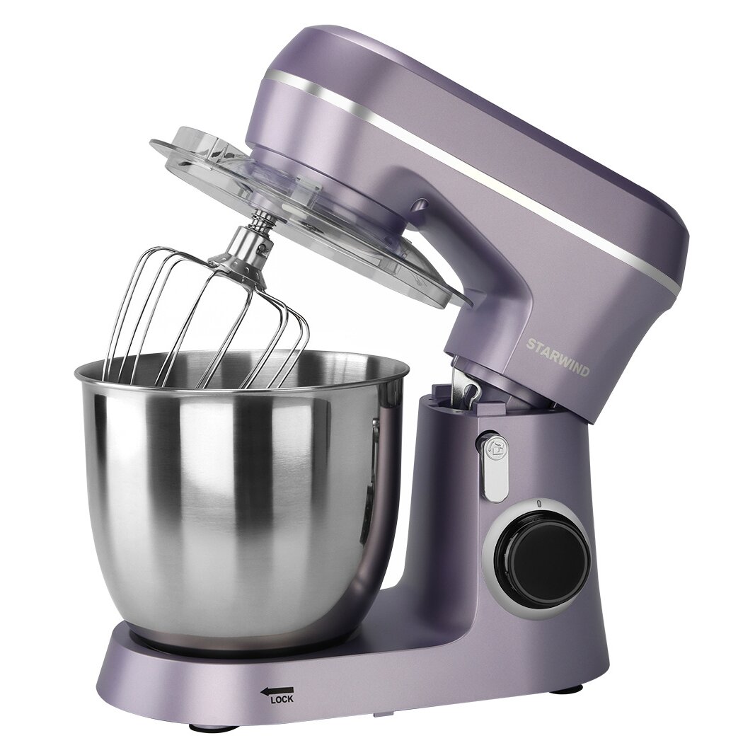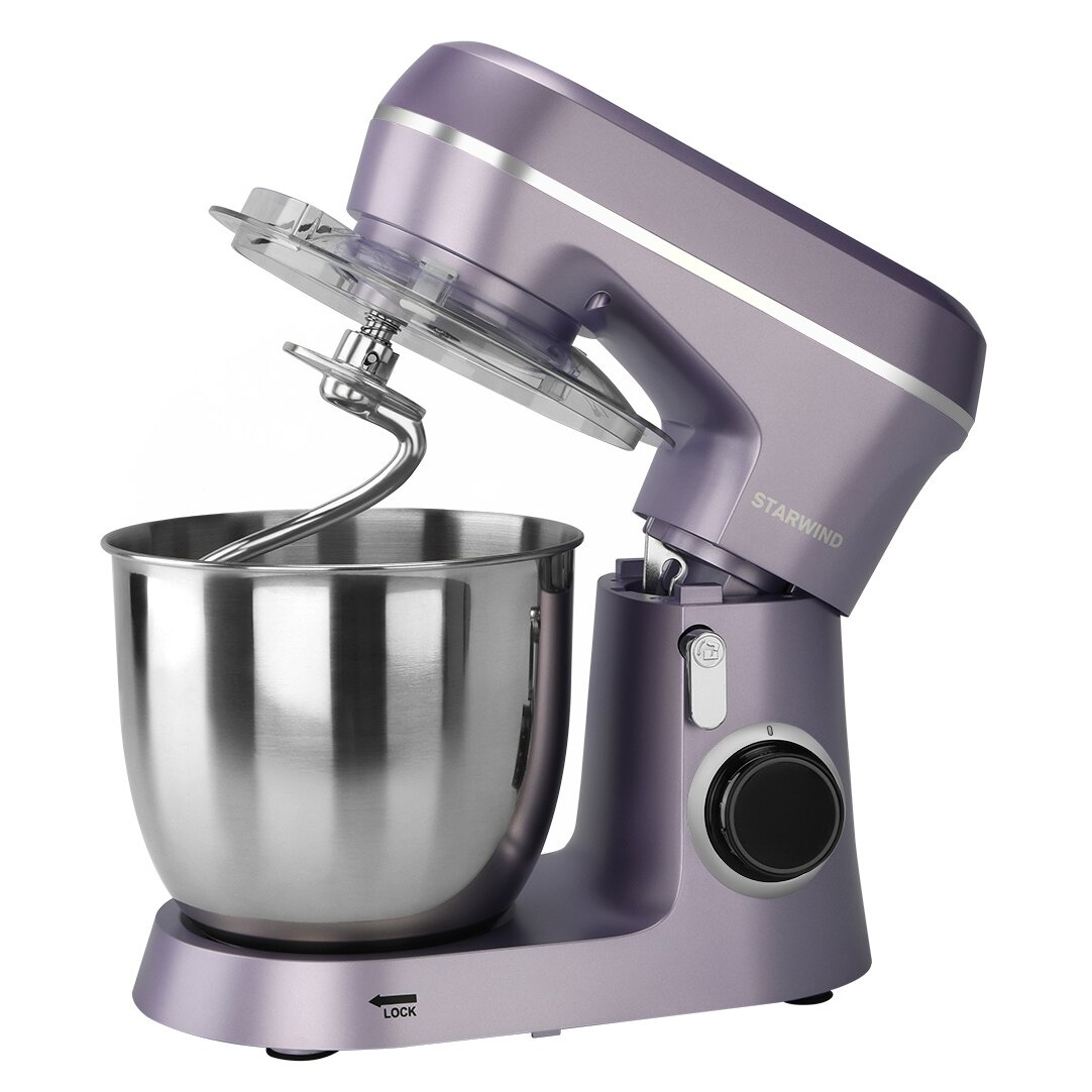 Миксер планетарный StarWind SPM6162 станет практически незаменимым помощником в вашем доме или квартире. Этот бытовой прибор создан с учетом всех современных технологий, пользоваться устройством – сплошное удовольствие. Техника сразу привлекает к себе внимание футуристичным дизайном, корпус лавандового цвета приковывает взгляды гостей. Мощность планетарного миксера составляет 1300 Ватт, а объем предусмотренной в конструкции емкости – 4,5 литра. Бытовой прибор изготовлен из высокопрочной пластмассы, а чаша – на основе нержавейки. В комплекте предусмотрены три насадки, крюк для теста, удобный венчик, а также лопатка.