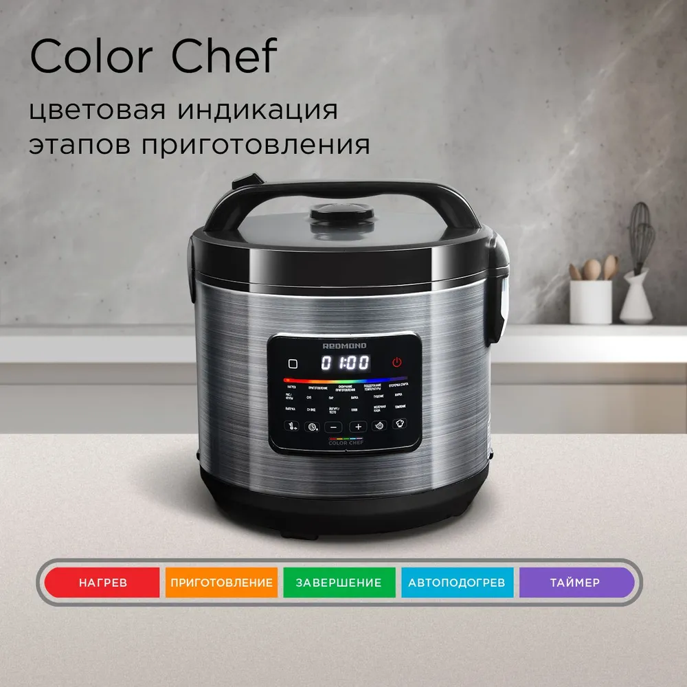 Мультиварка REDMOND MC109 — современное устройство с простым управлением, широким набором функций и 14 автопрограммами. Готовить с MC109 легко, даже если у вас никогда не было подобного устройства. В комплекте к прибору идет книга рецептов, в ней вы сможете найти большое количество подробных рецептов для этой мультиварки.