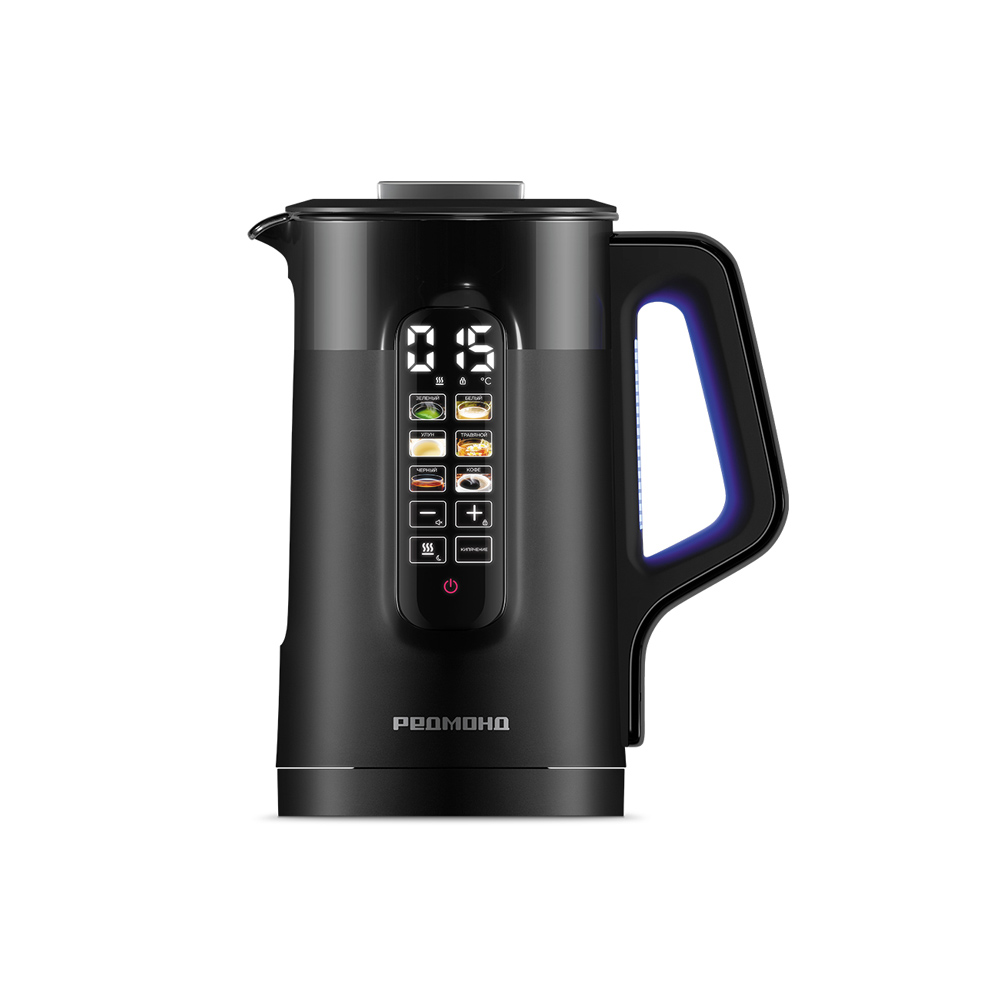 вращение на 360 градусов, двойные стенки, дисплей, индикатор уровня воды, индикация включения, отсек для хранения шнура, сенсорное управление, съемная крышка, терморисунок, фильтр
